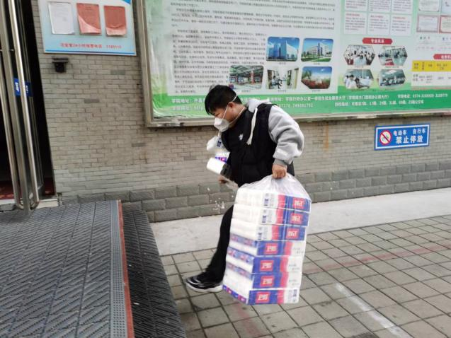 他叫陈涛民,在孩子刚出生还不满月的情况下,做到舍小家顾大家,在要求教师返校的第一时间没有犹豫“逆行”回到岗位投入到一线抗疫工作当中,被分配在D栋宿舍楼进行战“疫”志愿工作,尽管任务量艰巨且天气日趋炎热,陈涛民老师与其他志愿者老师们克服困难,每天穿戴好防护服和口罩,配合医护人员上门做核酸检测,为学生送必需物资和三餐饮食,工作初期,没有小推车运输,全靠人力搬运,运量有限,一顿饭需要不断往返搬运,尽管防护服里早已被汗水淋湿,仍按时将餐食送到学生手上。每天做完这些才能稍微有点喘息时间。