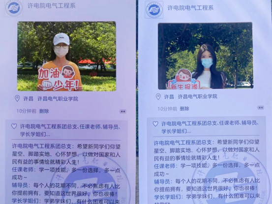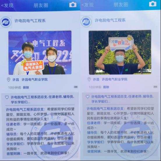 为了迎接新同学的到来,记录迎新的美好瞬间,电气工程系还精心准备了迎新海报及创意“朋友圈”,办理完入学手续的同学们纷纷在前拍照留念,他们朝气蓬勃的脸庞,都被定格在“朋友圈”里,留下了自己迈进大学生活的第一抹灿烂笑容。