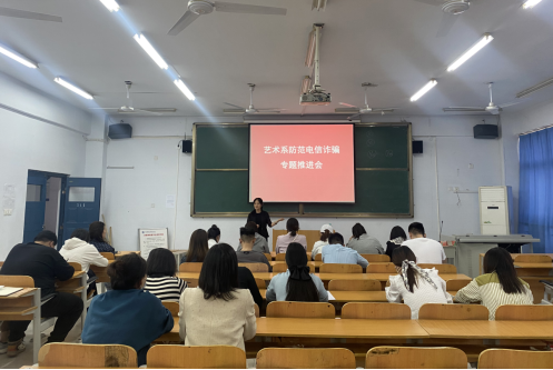 为帮助学生提高对电信诈骗的认知,增强对网络诈骗的风险防范意识,切实维护广大学生的合法权益,保障学生的人身财产安全,艺术系积极响应我院有关“电信诈骗”教育宣传活动,于4月20日下午五点半在教A311教室召开了防范电信诈骗专题推进会,系主任阎瑾瑜主持会议,系部全体教师及辅导员、班主任参加了会议。