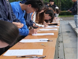 七点整,迎着朝阳,在嘹亮的国歌声中,五星红旗冉冉升起,随风飘扬。在场的每一位师生向国旗行注目礼,深怀对祖国无限的热爱和崇高的敬意。随后,由白鸽进行国旗下的演讲,宣读廉洁校园创建倡议书,并由各班级班长签订国旗下廉洁校园创建承诺书。