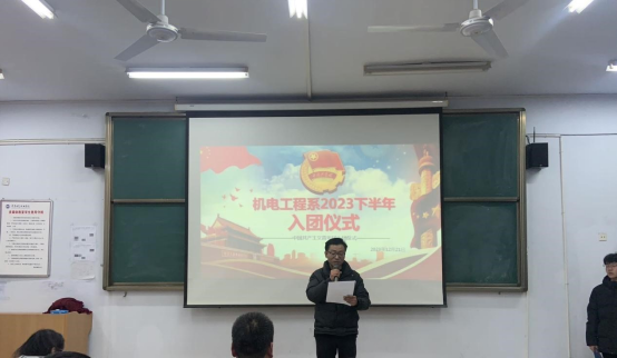 12月21日,机电工程系在教学楼A411教室为新发展的75名团员举行入团仪式,系副主任王会峰、团总支书记程文浩、团总支老师罗珂珂出席。