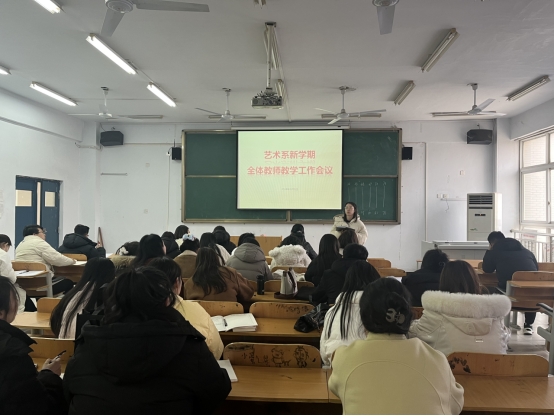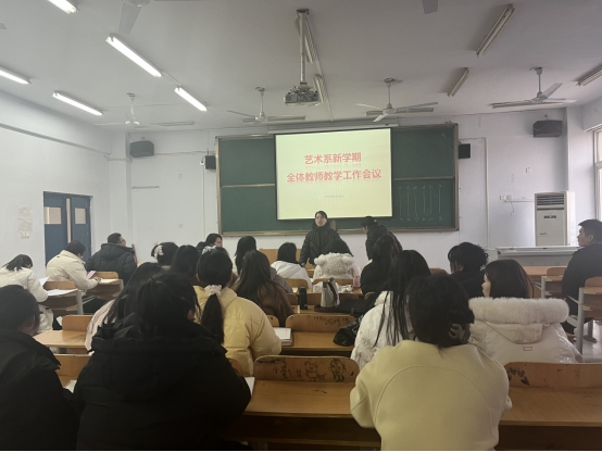 律回春晖渐,万象始更新。为切实做好新学期开学前各项教育教学准备工作,确保平稳有序的教学秩序,3月8日下午,艺术系在教A311教室召开全体教师新学期教学工作会议。艺术系主任阎瑾瑜、党总支副书记王俊平、副主任路庆敏及全体专兼职教师参加了此次会议。