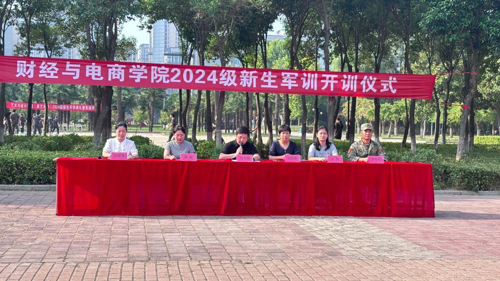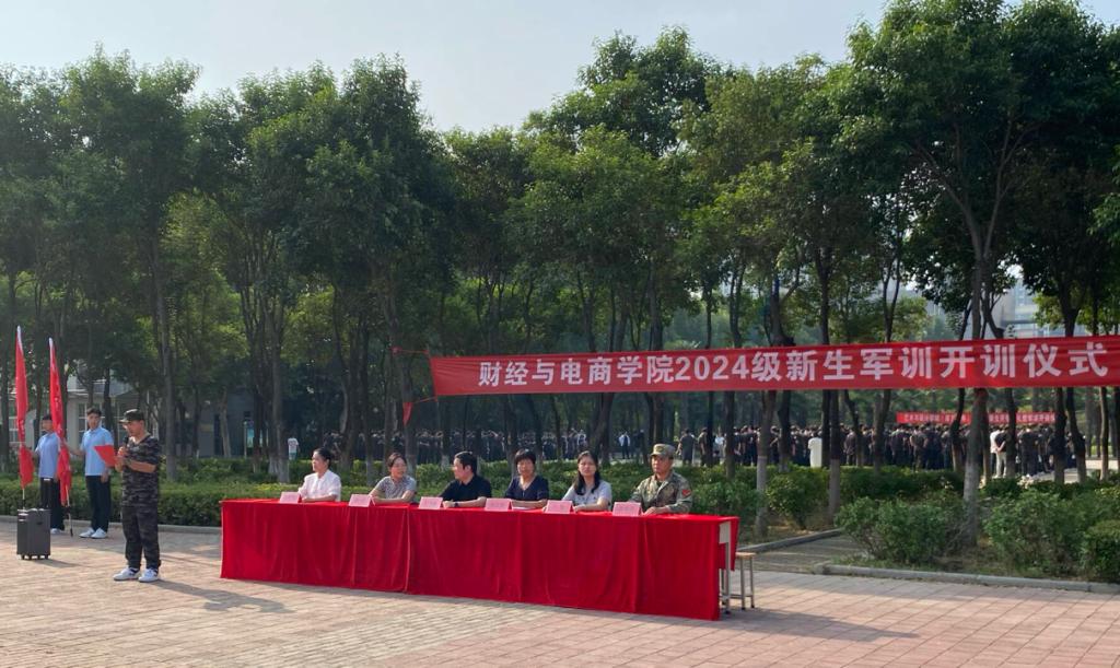 9月9日上午,财经与电商学院举行2024级学生军训开训仪式。学院党政负责人、相关科室负责人及新生辅导员一起见证了新生开训的庄严时刻。开训仪式由团总支书记孙妍哲主持。