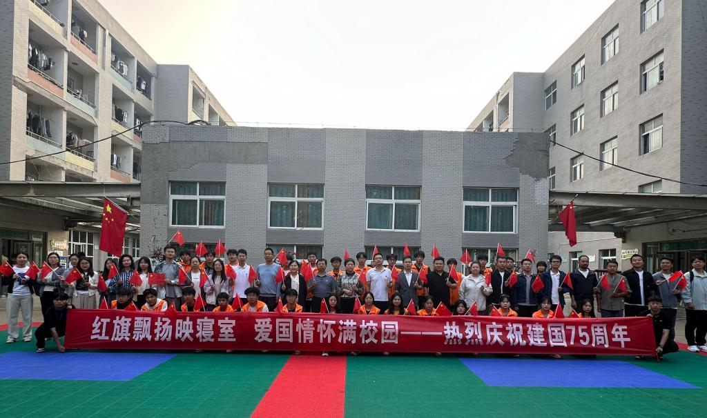 9月29日清晨,信息工程学院举行了“红旗飘扬映寝室,爱国情怀满校园——热烈庆祝建国75周年”活动。院工会主席张贵军,学生处处长杨红培,信息工程学院党政负责人陈晓红、王旭、李禄源以及全体辅导员和班主任老师参与此次活动。活动由团总支书记宋尚霖主持。