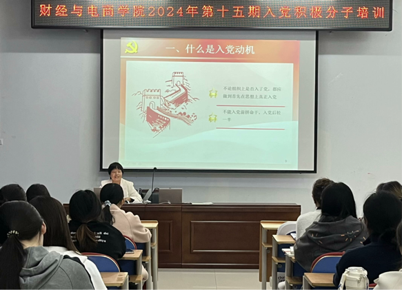 为深入学习贯彻习近平新时代中国特色社会主义思想,加强对入党积极分子的培养和教育,财经与电商学院于10月17日至10月23日举办2024年春季入党积极分子党课培训班,学院42名入党积极分子参与培训。