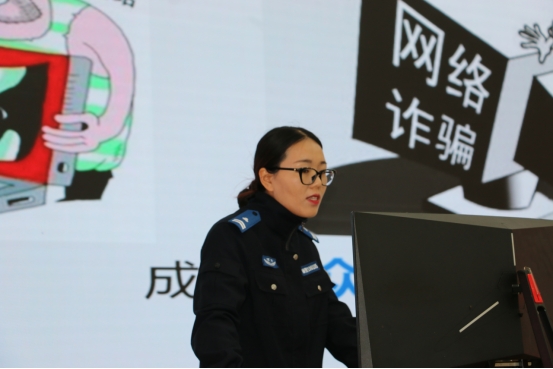 第二场讲座是由许昌市示范区尚集镇派出所协警吴红艳开展的防诈骗知识讲座。吴警官通过大量的实际案例,介绍了几种主要诈骗的类型。其中,“兼职刷单诈骗”是针对学生群体较为常见的诈骗方式,吴警官详细分析了诈骗分子的作案手段,提醒同学们不要轻信网络上轻松赚钱的虚假信息。“假冒客服诈骗”则往往利用人们对电商平台客服的信任,吴警官告诫师生们在接到自称客服的电话时,要通过正规渠道核实对方身份。