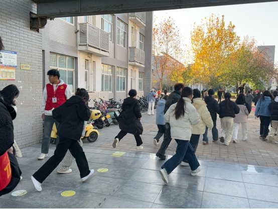 下午16:00,演练正式开始。此次演练模拟了真实的火灾场景,学生发现火险、火情后,立即向宿管员报告。宿管员迅速拨打校园报警电话通知保卫处,并准确提供着火地点、火势大小和有无被困人员等关键情况。保卫处向院领导汇报相关火情信息,院领导在得知消息后,立即启动消防安全应急预案,发出紧急救援疏散命令。