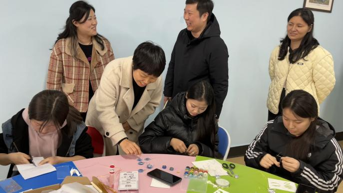 活动期间,学院党总支负责人刘书源、行政负责人刘会彩、副书记吕艳和团总支书记孙妍哲来到现场,穿梭在同学间观看制作过程,与同学们亲切交流,对大家的创意和动手能力给予肯定,鼓励同学们传承非遗文化。
