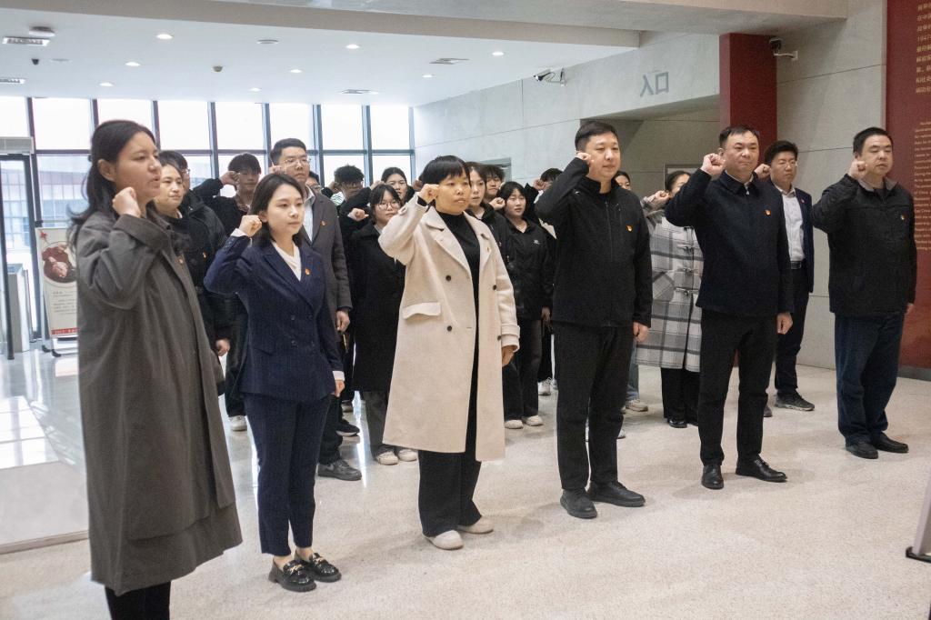 “誓言重千钧,初心永不沉。”参观结束后,全体党员面向鲜红的党旗,庄严地重温了入党誓词,更加坚定了为党和人民的事业奋斗终生的理想信念。