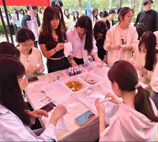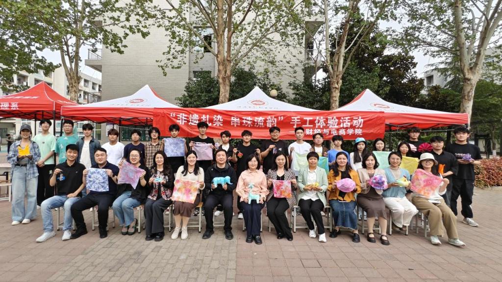 一针一线勾勒时光,一染一串浸润匠心。4月9日,财经与电商学院主办的“非遗扎染·串珠流韵”手工体验活动在教学楼A广场东侧大道圆满落幕?;疃源吃炯家瘴咨鹣执橐帐醯牧槎?,带领我院学生沉浸式感受非遗与现代手作的跨界对话,为古老技艺注入年轻活力。
