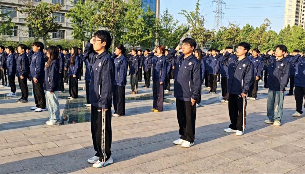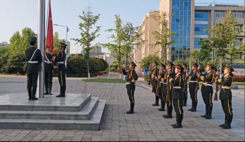 仪式伊始,激昂的出旗曲奏响,国旗护卫队队员们个个身姿挺拔,迈着整齐且坚定有力的步伐,护卫着鲜艳的五星红旗,稳步走向升旗台。接着,国歌奏响,五星红旗冉冉升起,全体师生庄严肃立,怀着崇敬之情向国旗行注目礼,齐声高唱国歌,歌声嘹亮,爱国之情在每个人心中澎湃。