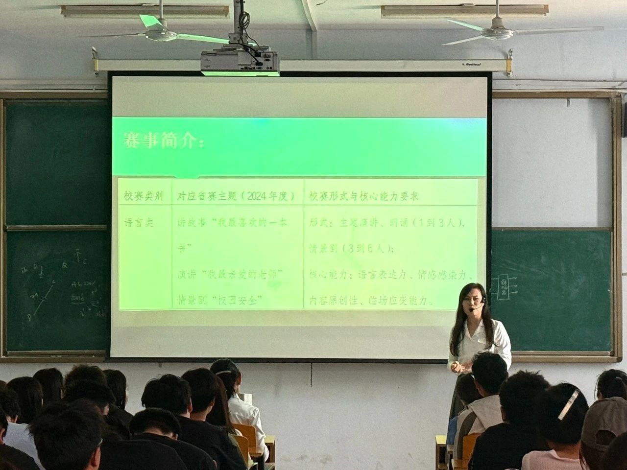杨倩介绍参赛主题为“传承、创新、匠心——新青年的使命与担当”;参赛形式分个人或团体赛;参赛内容聚焦“大学生创新创业”、深耕“弘扬传统文化”、演绎“工匠精神”;评分细则从主题与思想(25分)、成长与感悟(20分)、创意与创新(15分)、语言表达(10分)、仪表仪态(10分)、现场感染(10分)、整体呈现(10分)这几个维度开展。原创内容、创新形式、传统文化元素是本次语言类比赛的加分项。
