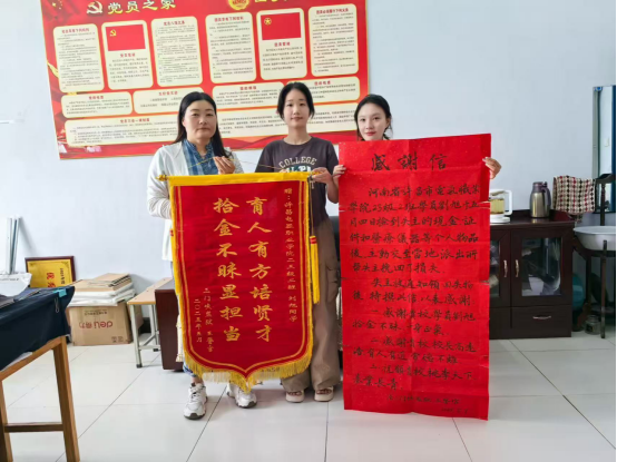 锦旗寄谢意,善举暖人心。5月13日上午,一面绣有“拾金不昧显担当,育人有方培贤才”的锦旗和一封饱含深情的感谢信,送到了艺术与设计学院办公室,为我院增添了一抹温暖亮色,也让2023级婴幼儿托育服务与管理2班学生刘旭拾金不昧的事迹广为人知和流传。
