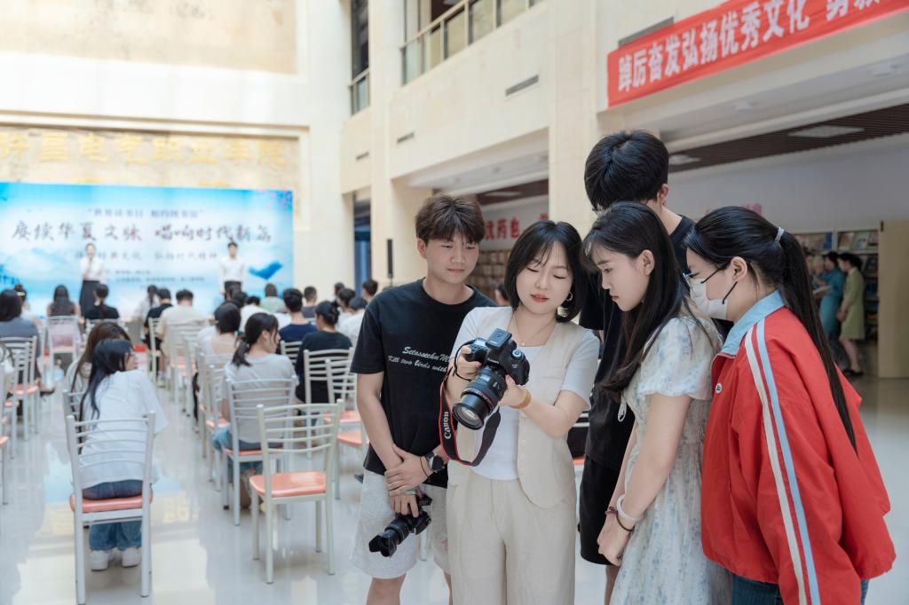 5月7日下午,信息工程学院联合院图书馆将虚拟现实技术应用专业摄影课堂"搬"进许昌电气职业学院第十届读书节现场。在文化传媒公司技术总监张老师与信息工程学院专业教师杜佩的"双导师"指导下,学生们化身活动摄影师,完成了一场从课堂到实践的沉浸式跨越。