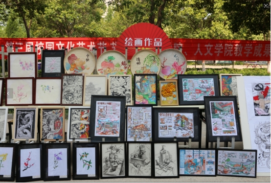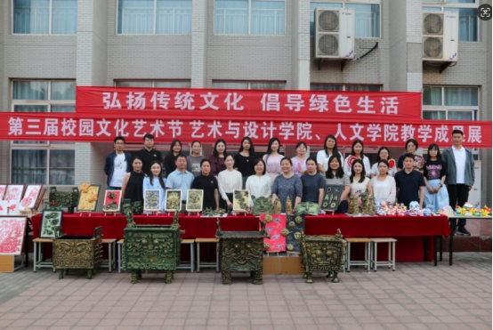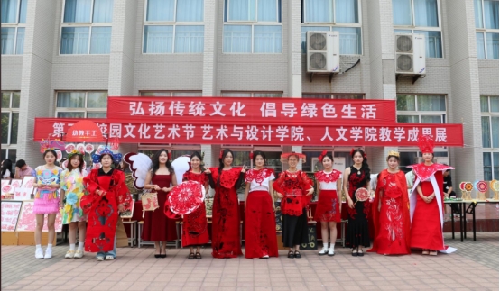 5月28日,艺术与设计学院第三届校园文化节教学成果展在教学楼A东侧广场盛大启幕。本次文化节以“弘扬传统文化?倡导绿色生活”为主题,集中呈现设计作品、绘画作品、影幕拾光、非遗文创、创意书法、化妆造型、幼儿手工等 7 大板块超 300 件创意作品,吸引全校师生驻足参观,成为校园美育实践与专业教学融合的生动缩影。