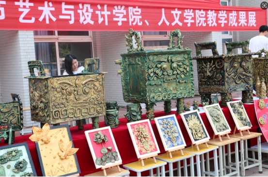 活动期间,学院院长高远浩、学生处处长杨红培到现场参观了教学成果展,对我院的教学成果表示了肯定和赞扬,对展品的专业水准与文化内涵给予高度评价,并就后续校企合作、作品转化等事宜提出指导性意见。