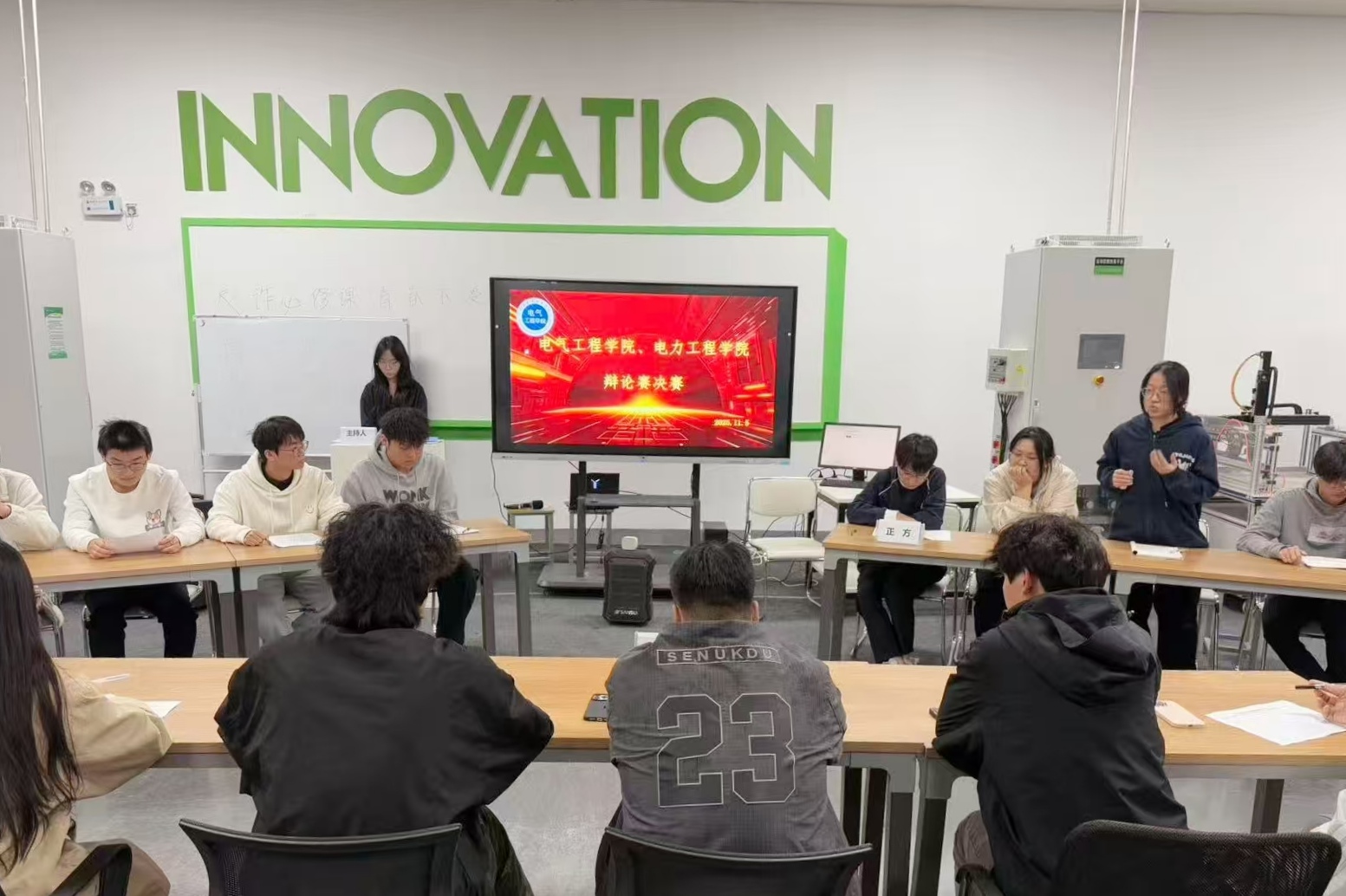 为提升学生思辨能力与综合素养,10月29日—11月5日电气工程学院、电力工程学院举办了“舌战群雄,‘辩’亮青春”主题辩论赛。赛事历经初赛、复赛和决赛三个阶段,吸引了众多学子积极参与,现场气氛热烈,思辨氛围浓厚。